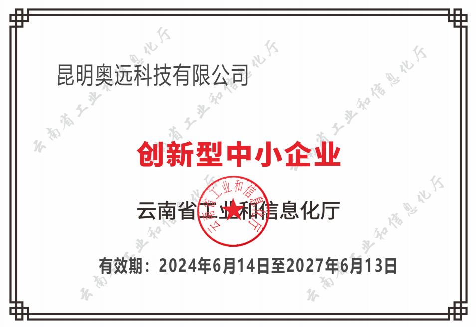 昆明奧遠科技有限公司榮獲“創(chuàng)新型中小企業(yè)”稱號